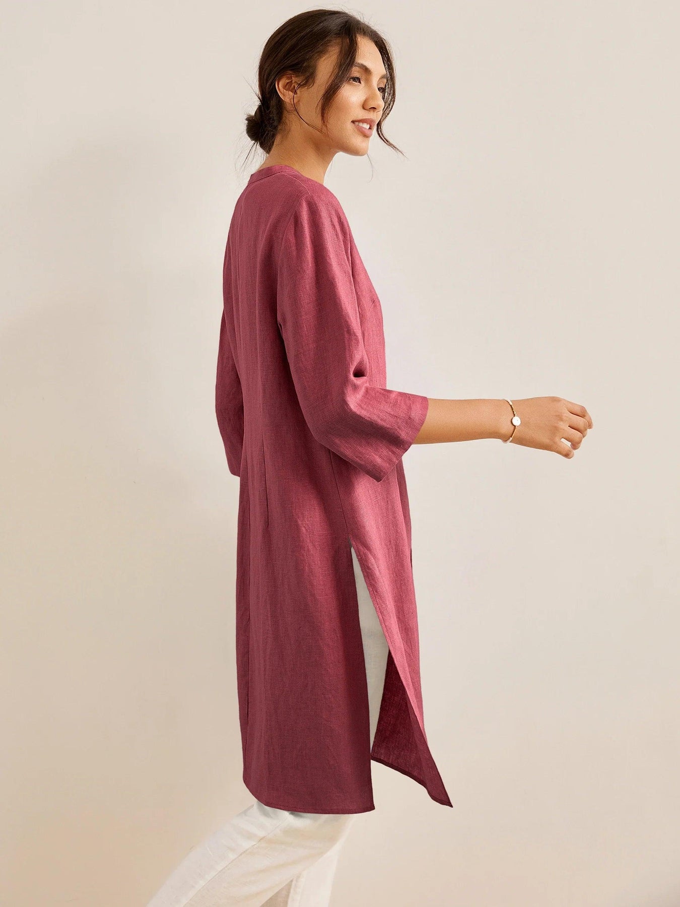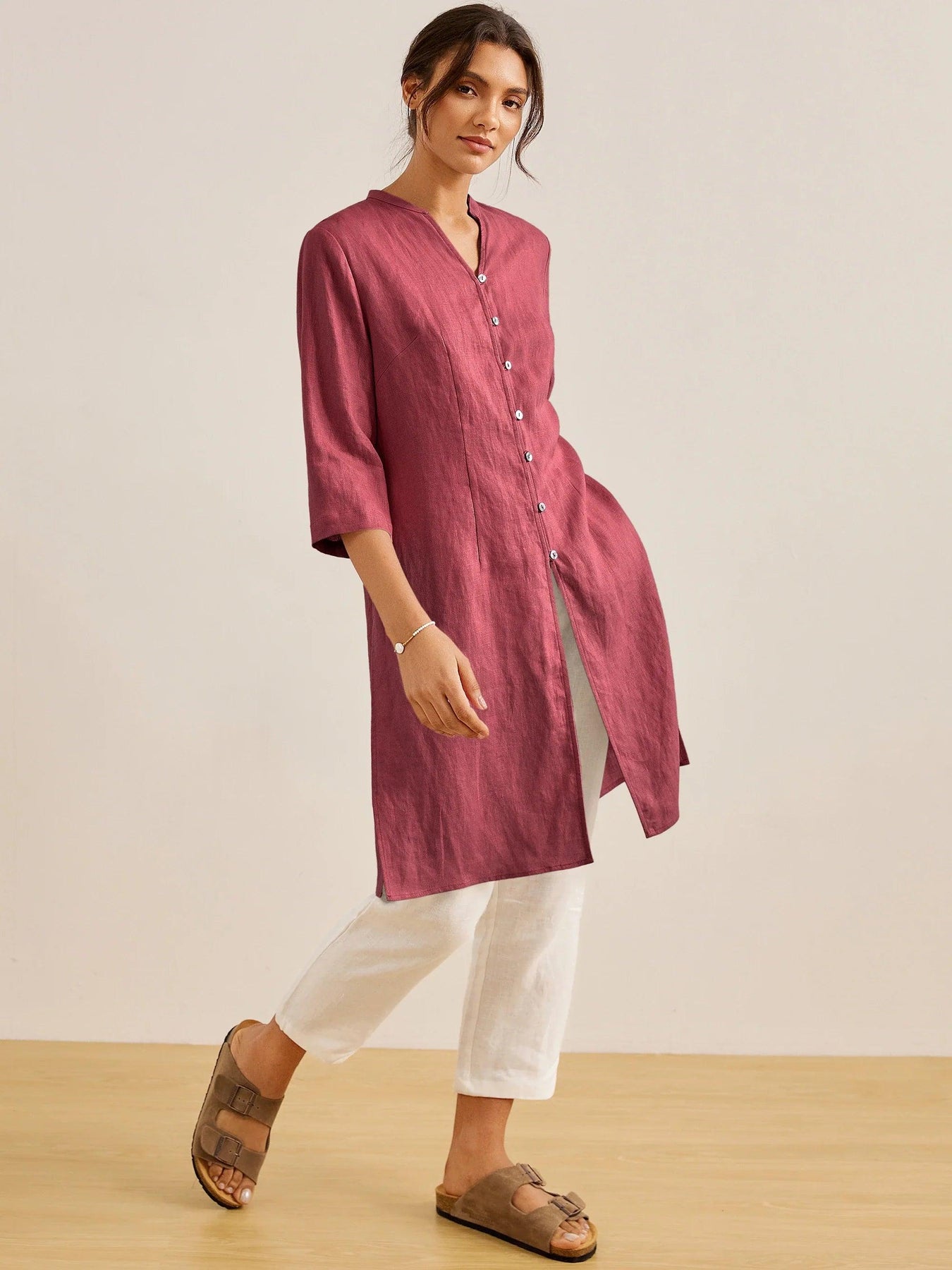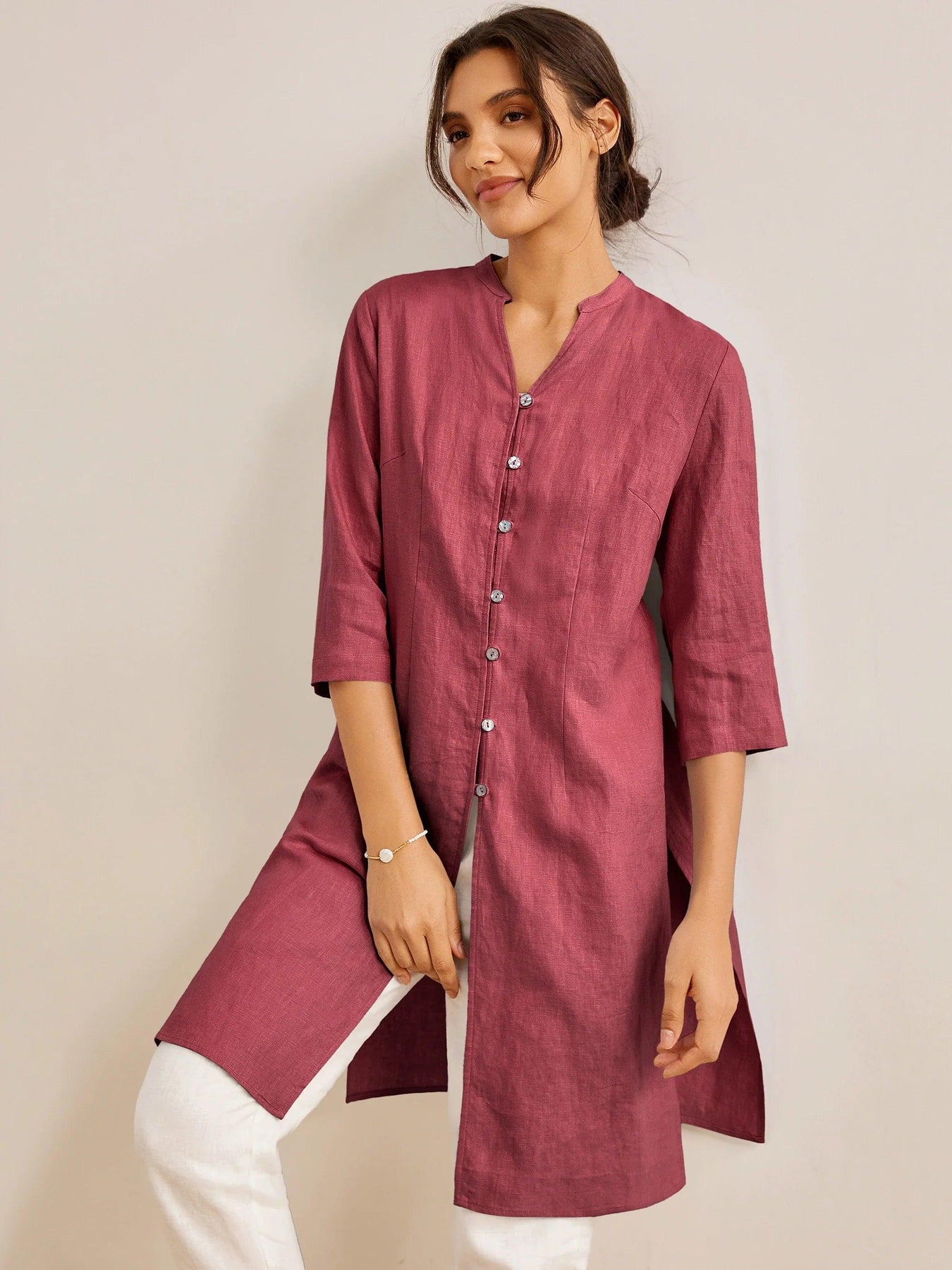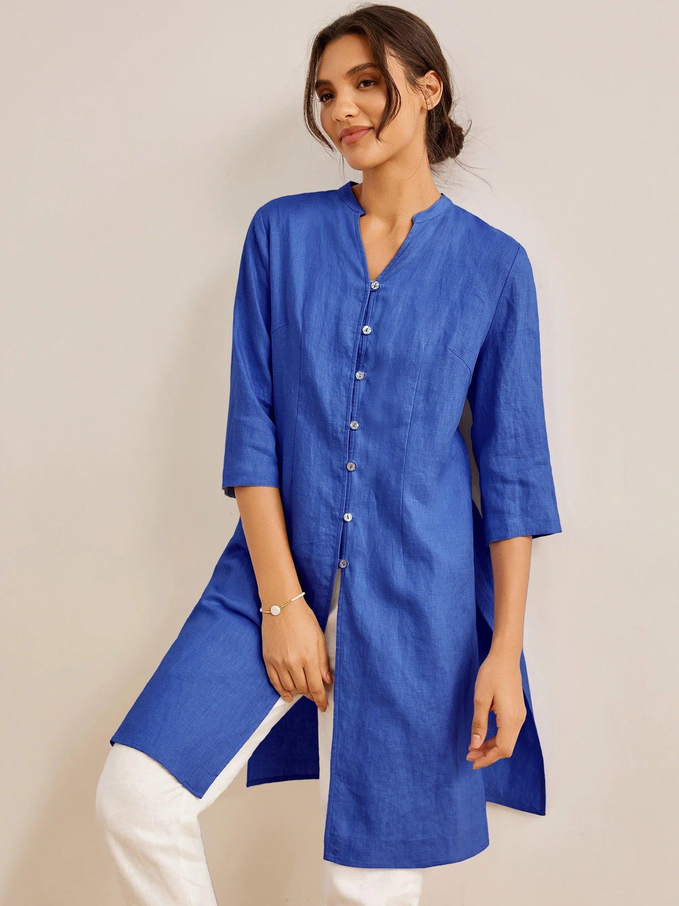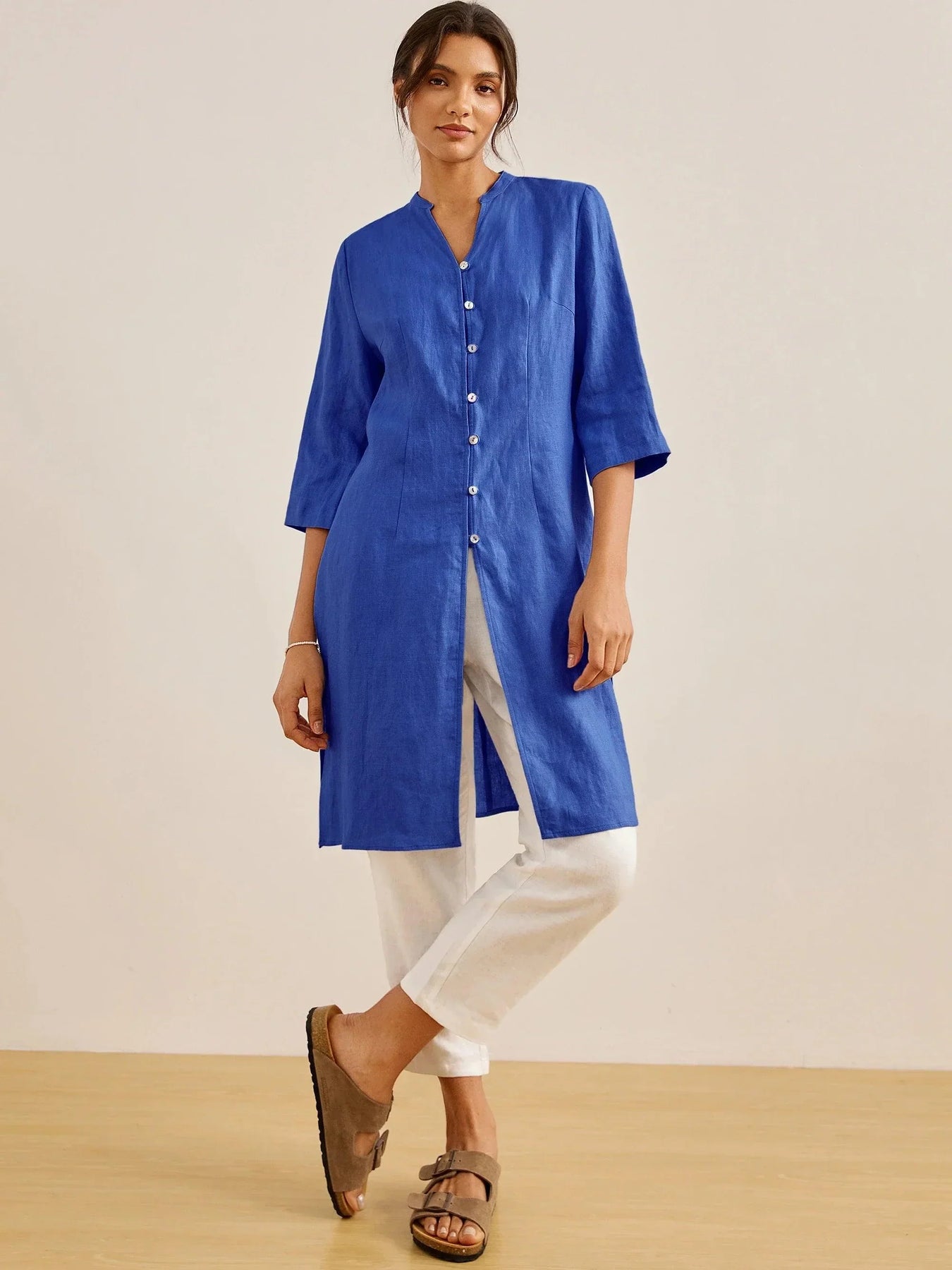 100% Linen Hand Button Long Top