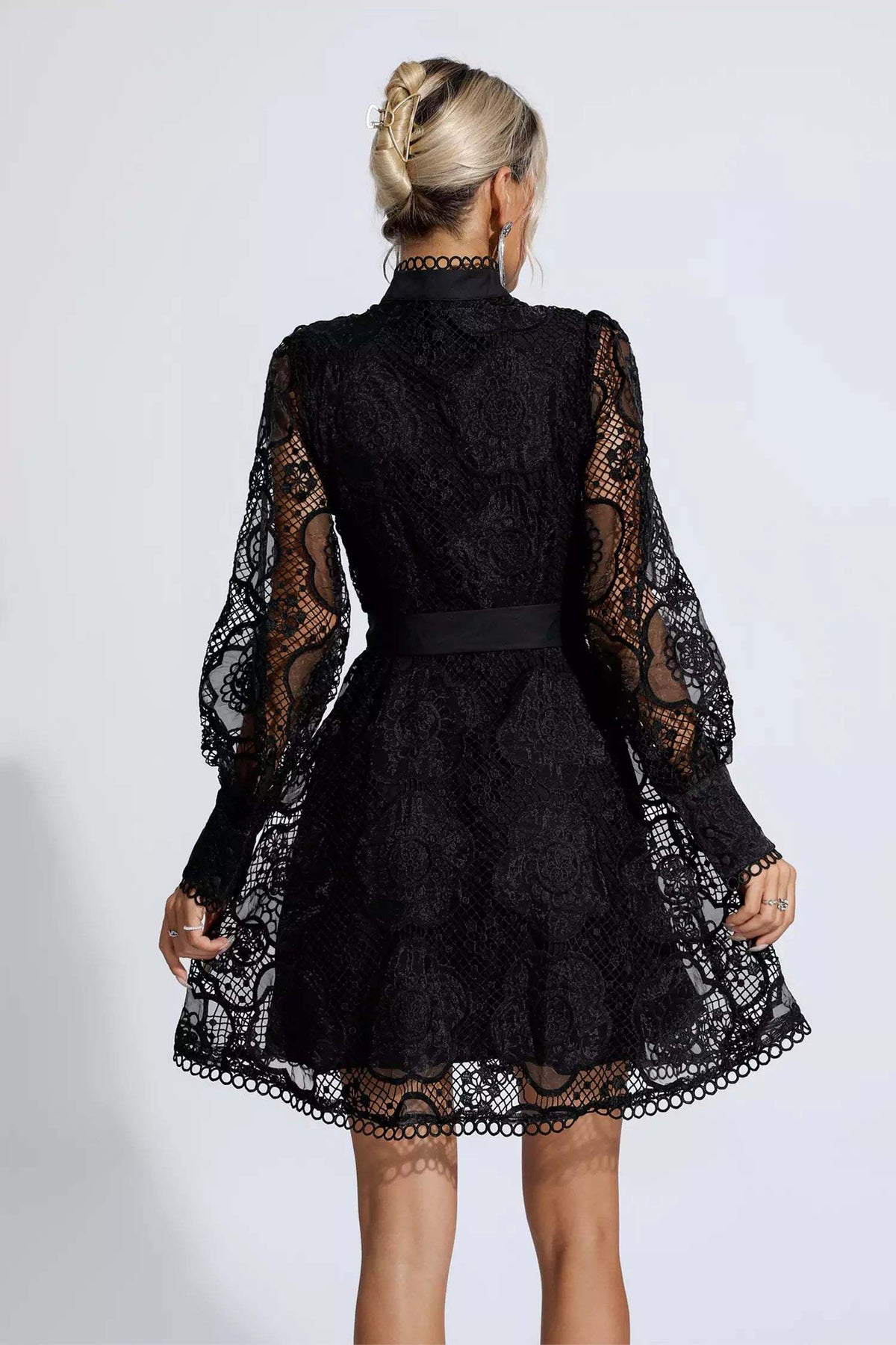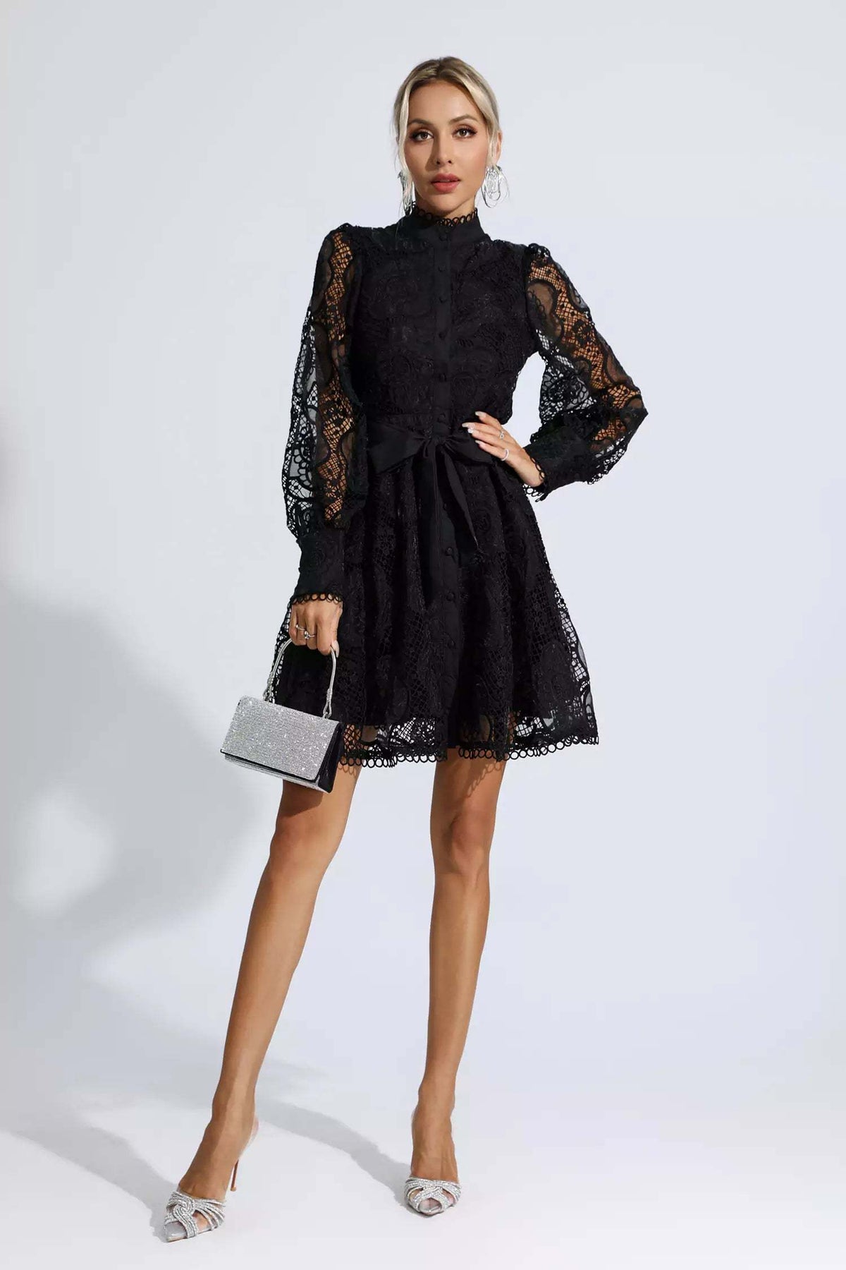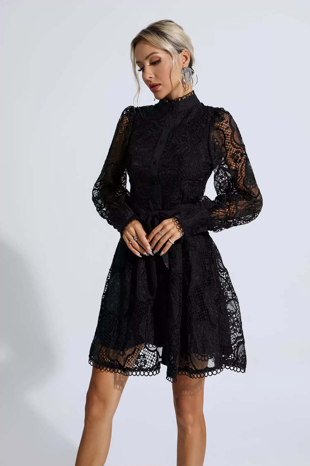 An outfit you can't go wrong with is our Black Lace Jacquard Mini Dress. Long sleeves, floral lace, and a mini skirt make this a wardrobe must-have dress. This dress will add a unique appeal to you. Put it on and you will look good on any occasion. Why not buy it quickly?