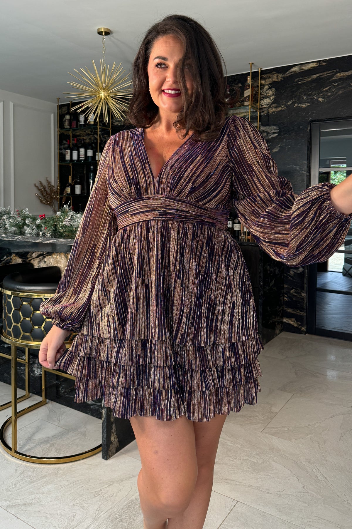 The Metallic Skater Dress will be the star of any outfit. The eye-catching metallic fabric shines in a captivating hue and the tiered skirt adds a feminine touch. Show off your figure and show off your style in this gorgeous dress! Pair with gold heels and minimal jewellery.