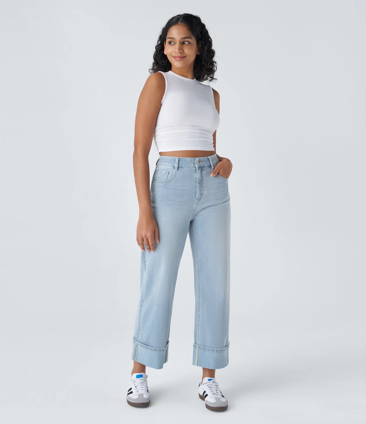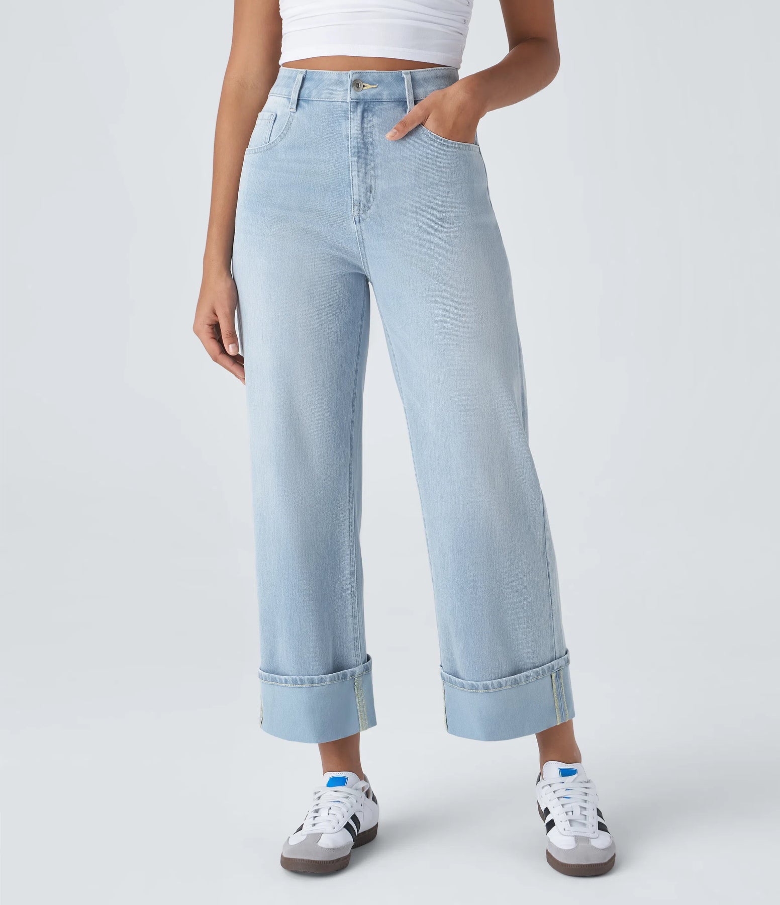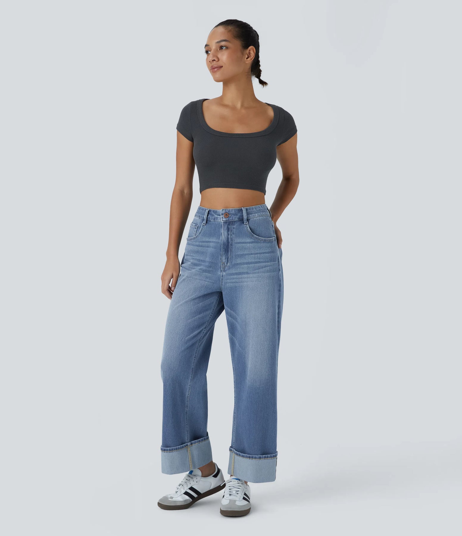 -Rolled hem jeans are a staple for any wardrobe this season.