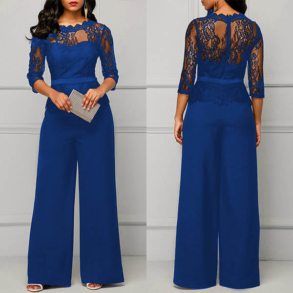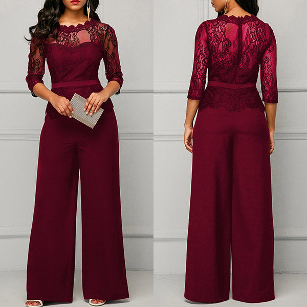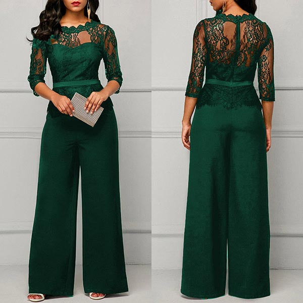 Do you want to try a different way to reflect your sexy and charming image? Then we recommend this jumpsuit! This jumpsuit features 3/4 sleeves, a round neck and a high waist. This beautiful piece can highlight your slim figure. Also, the lace-mixed designs will enhance your feminine charm. Trust me. This product will not disappoint you!